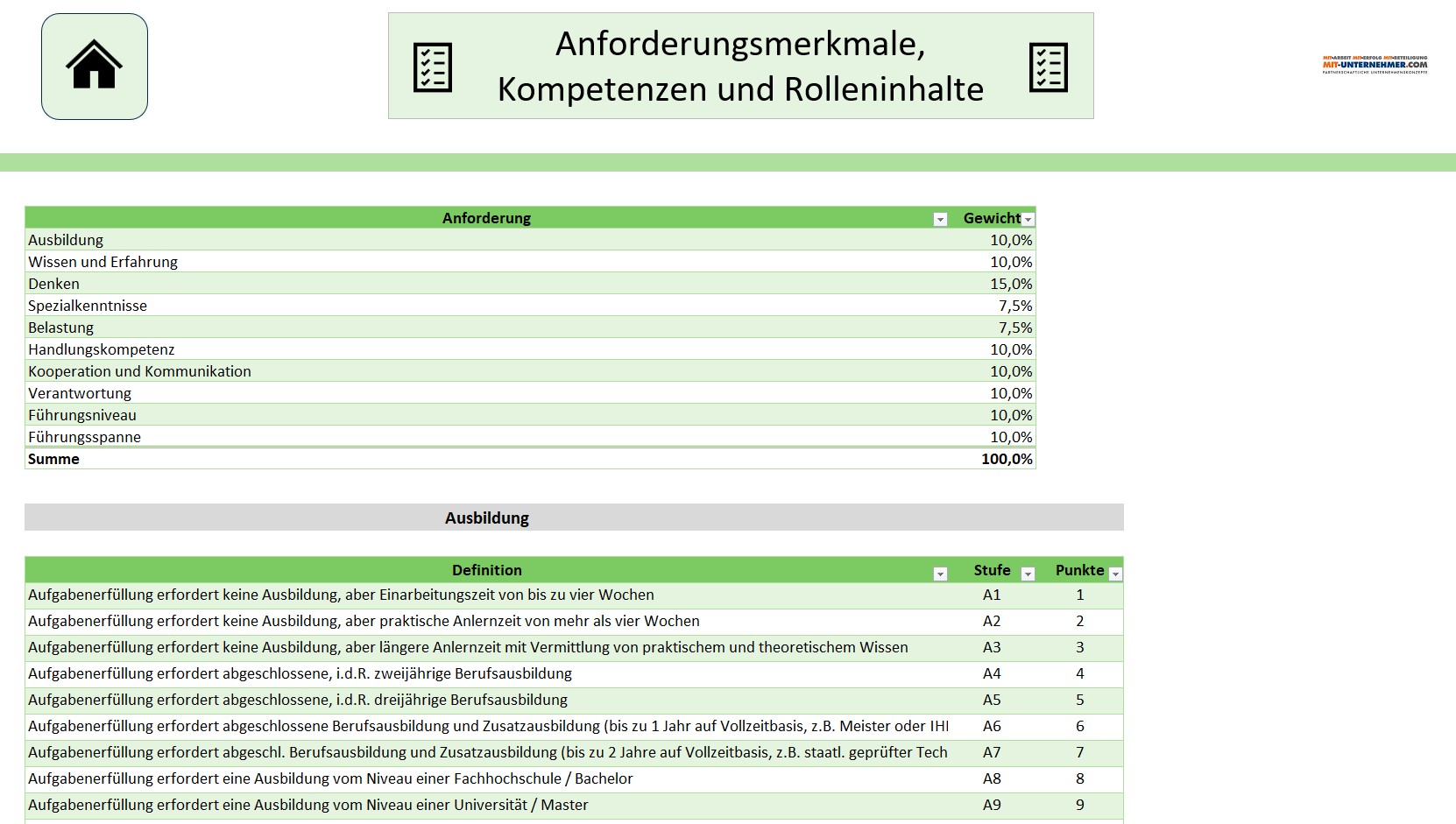 - Stellen- und Rollenbeschreibungen analysieren und um arbeitswertbeschreibende Kriterien ergänzen