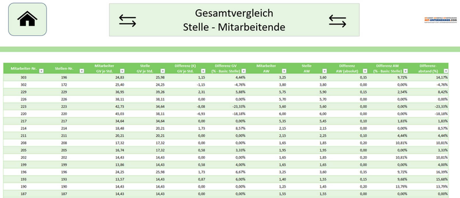 - Arbeitswerte berechnen und Soll-Ist-Abweichungen bei Entgelten identifizieren